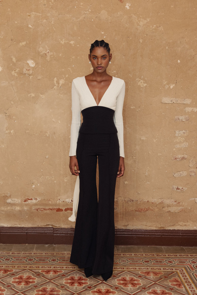 • Deep V neckline.